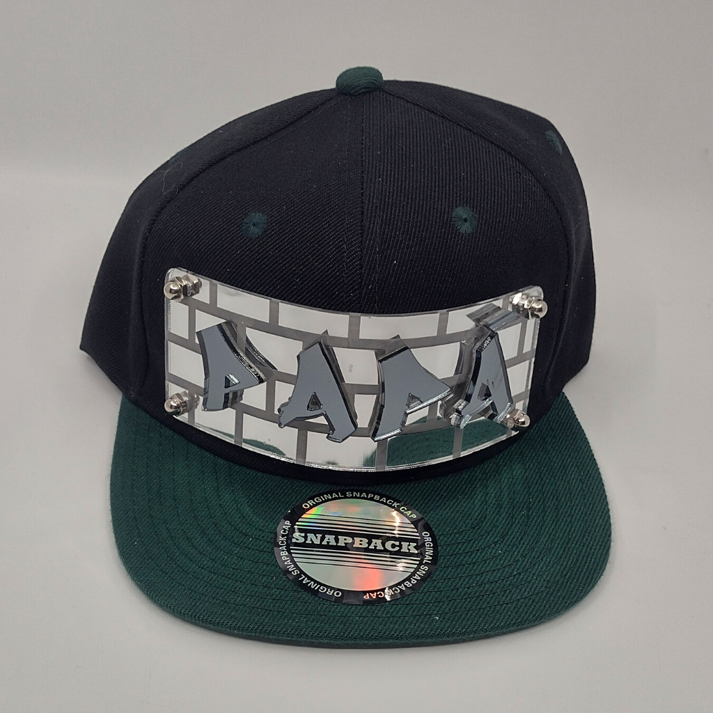 Black and Green Custom Snapback Hat, Laser Cut, Made to Order, Exclusive Creation