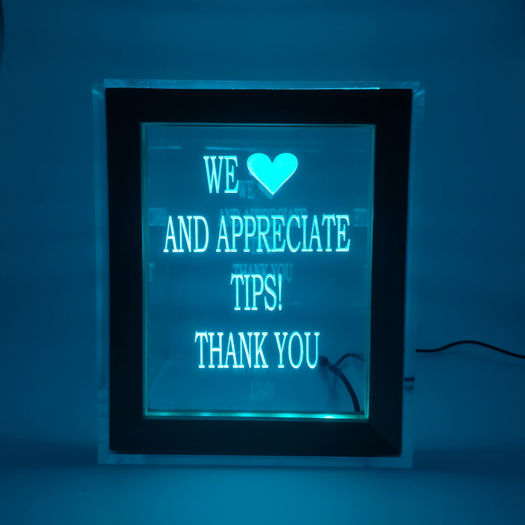 Tip Box Raffle Fund Raiser Donation Jar Fantastically Unique Eye Catching Personalized Engraved LED 16 Colors Changing 7"W x 8.5"H Container